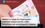 Як інформує начальник ГУ ДПС у Вінницькій області Оксани Домерат платники регіону продовжують збільшувати перерахування податкових платежів. Проти запланованого до державного бюджету у січні надійшло на 35,4 млн грн більше, а надходження минулого року перевищено на понад 449,2 млн грн.