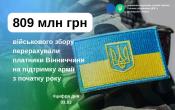 Упродовж січня-лютого 2026 року платники Вінниччини спрямували на потреби української армії 809 мільйонів 41,5 тисячу гривень військового збору. Про це інформує начальник ГУ ДПС у Вінницькій області Оксана Домерат.