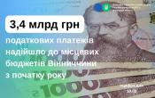 До місцевих бюджетів Вінниччини з початку року надійшло 3,4 млрд грн податкових платежів.
