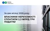 За два місяці 2026 року власники нерухомості сплатили 2,3 млрд грн податку