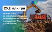 Господарники Вінниччини у січні-лютому перерахували до бюджету 25,2 млн грн рентної плати за користування надрами.