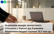 За рахунок заходів примусового стягнення у березні від боржників Вінниччини бюджет отримав 15,7 млн грн