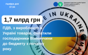 Господарники Вінниччини до бюджету у січні-березні 2026 року сплатили 1,7 млрд грн ПДВ, з вироблених в Україні товарів