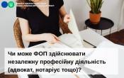 Слід зазначити, що Законом України від 05 липня 2012 року № 5076-VI «Про адвокатуру та адвокатську діяльність» із змінами і доповненнями не заборонено займатись адвокатською діяльністю фізичній особі, яка зареєстрована як фізична особа – підприємець.